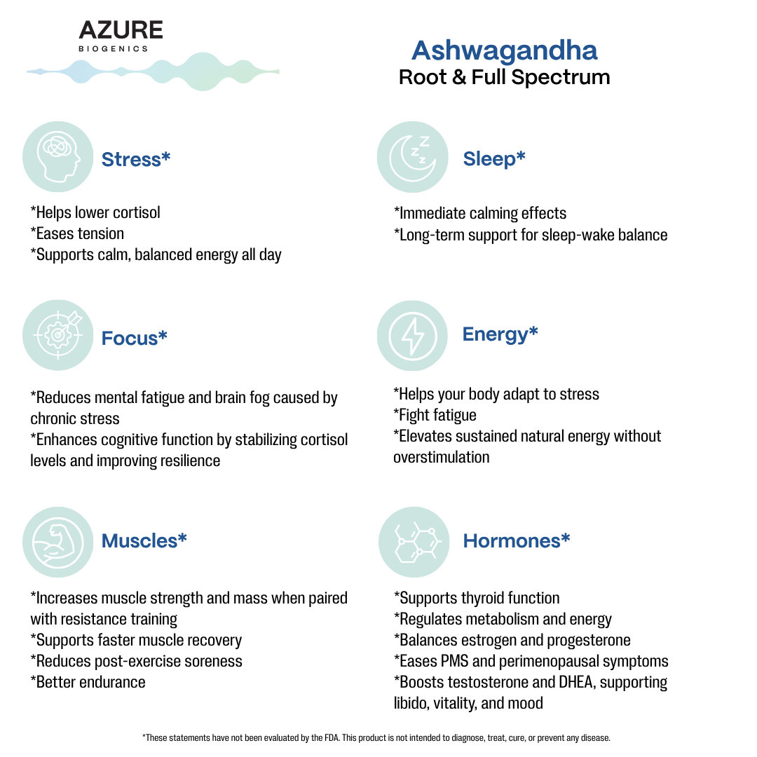 Ashwagandha Root - Organic Root + Full Spectrum Formula – Supports Stress, Sleep, Focus, Energy, Muscles and Hormones*