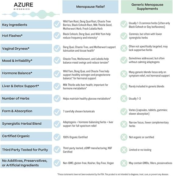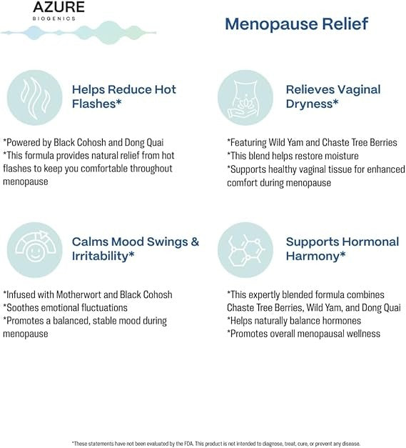 - NATURAL MENOPAUSE RELIEF* – Expertly formulated to help ease common menopausal symptoms including hot flashes, night sweats, mood swings, and vaginal dryness—without the use of hormones or estrogen.