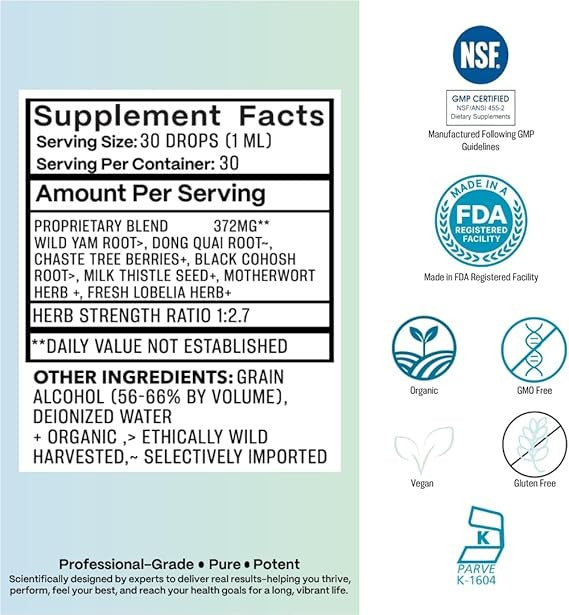 - FAST-ABSORBING LIQUID FORMULA – Easy-to-take liquid drops ensure quick absorption and gentle, effective support—ideal for women who prefer an alternative to pills or capsules.